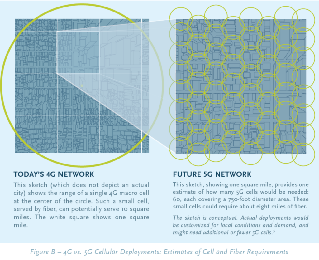 But with 5G, we would need 60 small cell sites per square mile with an average of 8 miles of fiber backhauling for each.
